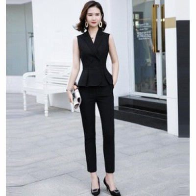 楽天市場 パンツドレス パンツスーツ レディース スーツ カジュアル ビジネス オフィス 結婚式 入学式 卒園式 春夏 大きいサイズ 韓国ファッション アンクルパンツ Erieri